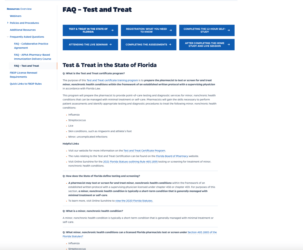 Revised and Edited FAQ’s for Test and Treat Pharmacists Certificate Program
